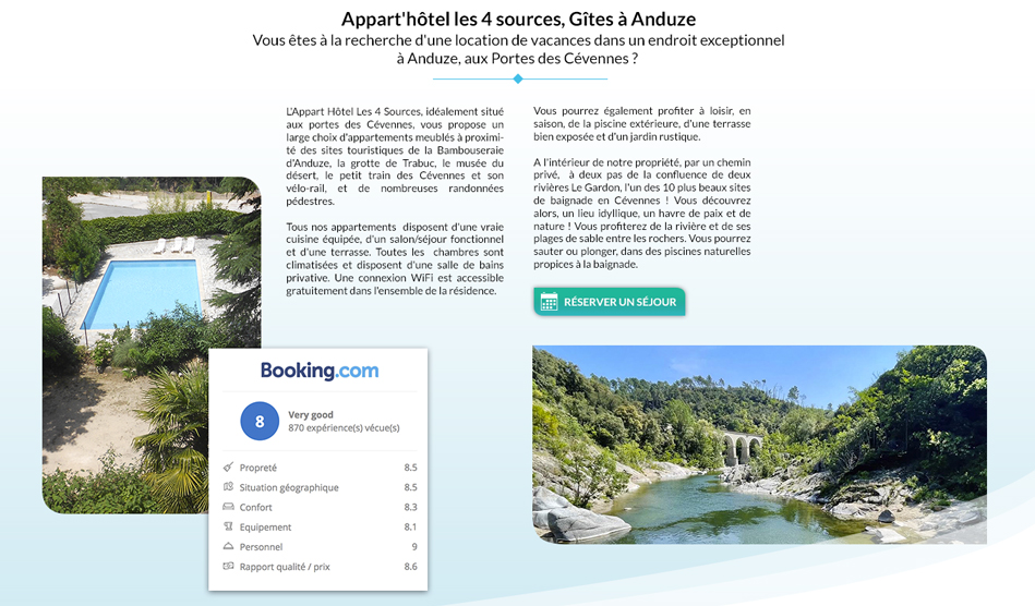 L’Appart Hôtel LES 4 SOURCES, idéalement situé aux portes des Cévennes, vous propose un large choix d’appartements et studios meublés à proximité des sites touristiques et à la confluence des gardons.